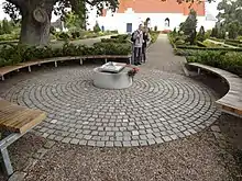 The original burial ground is located a few meters south of the great oak in the middle of the cemetery, but during a reorganization of the cemetery walkways in 1943, the gravestones were moved a few meters to the southeast and turned to the west. The original gravestones were replaced by new ones on the 75th anniversary in 1964. On Madigan's new gravestone her stage name was also mentioned. In 1999, the original tombstones were restored and re-used, but now turned east and moved a few meters eastward. In 2013, the memorial site was redesigned again and the tombstones were placed close to each other in the middle of a circular pavement located near the 1999 memorial site.[13][14]
