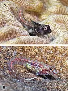 - ↑ Christopher Scharpf; Kenneth J. Lazara (10 November 2018). "Order BLENNIIFORMES: Families CLINIDAE, LABRISOMIDAE and CHAENOPSIDAE". ETYFish Fish Name Etymology Database. Christopher Scharpf and Kenneth J. Lazara. Retrieved 14 April 2019.