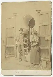 Emily and James Sibley Watson at the entrance to the mosque in the Alhambra, Granada, Spain, June 2, 1891