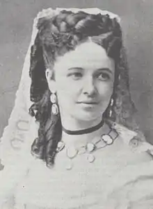 In the fall of 1874, she undertook a tour of the United States, visiting New York, Boston, Philadelphia, Baltimore, Washington, D.C., Chicago and Albany.[24] The tour was under the management of Maurice Strakosch. She was accompanied by Frederick Gye's son, Ernest Gye, who was acting on his father's behalf.[25] She learned the role of Elsa in Wagner's Lohengrin in two weeks, performing it at the Academy of Music in New York.[26] The opera was performed in Italian, which was also the custom at Covent Garden.[23]
