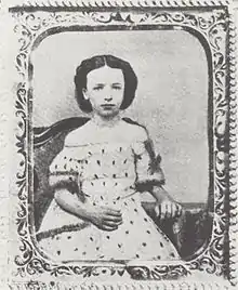 The family moved to Plattsburgh, New York, in 1852.[8] In 1856 after the death of her mother, she continued her education in a Montreal convent-school, run by the Dames du Sacré-Coeur where her father had obtained the position of Music Master. This afforded her a better education than she might otherwise receive, and additional musical instruction. On 24 August 1860 she and Adelina Patti were soloists in the world premiere of Charles Wugk Sabatier's Cantata in Montreal which was performed in honour of the visit of the Prince of Wales.[9] She was also awarded a gold medal for musical composition from that convent.[4] However, she was ultimately unable to finance a musical education in Quebec, where singing and acting were considered unsavoury careers for a woman, and her family moved to Albany, New York in 1865. Her father was unable to give her the training which her very fine voice deserved, but she obtained a place in the cathedral choir, where her singing attracted much attention, as it did in concerts, in which she not only sang but played on both the piano and harp.[4] There she became a popular singer, an organist and teacher of singing and saved enough money to continue her studies.[10]