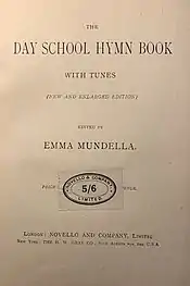 Emma Mundella’s most important work, however, by which she will be remembered, is The Day School Hymnbook (Novello and Company, London, 1890). The first edition, published in 1890, contained 83 hymns. The Musical Times reported that it was remarkably well-received and reviewed and proved her to have the sort of skill in selecting words and music which would win the hearts of the young.[11] Novello and Company requested her to enlarge the scope of her work and make the second issue much more comprehensive.[11]