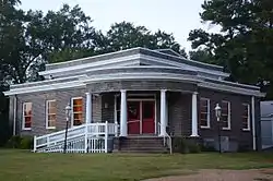 In 1948, the congregation moved a white frame building alongside the church to serve as its fellowship hall. The building had been used during World War II as "Hospital Building No. 325" at the United States Army's Southwestern Proving Ground, which was located in Hempstead County, just north of Hope. The building was originally designed by the firm of Howard, Needles, Tammen & Bergendoff and it was constructed by the 'Callahan Construction Company' in 1941.[5]