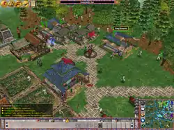 Empires: Dawn of the Modern World is a real-time strategy (RTS) game in which the player guides a civilization through five historical periods, from the Middle Ages to World War II. As in many RTS titles, the player collects natural resources, erects buildings, and trains and maintains a military. Players use a mouse cursor interface (or hotkeys) to direct their units, which range from crossbowmen to King Tiger tanks.[4][5] A three-dimensional (3D) camera system allows the player to view the action from any perspective, including isometric and first-person angles.[4][6] A mini-map is included as well.[4]