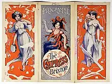 The Empress Theatre was built for Messrs W. H. Burney and W. J. Grimes and was designed by Wylson & Long and built by the contractor T. L. Green. The Empress could seat 1,260 on three levels, stalls and pit, Dress Circle and Gallery, and had a large stage 60 foot wide by 40 deep with a proscenium opening 30 foot wide. The electric lighting and heating was installed by Messrs Strode and Co.. The box-office hall was decorated with marble mosaic by Messrs Diespeker and Co., and was fitted with Japanese leather decorations. The auditorium, decorated in the French Renaissance style, was fitted with 'chaste embellishments' of nine panels 'each ornamented by a heraldic dive of griffins.. clawing a shield in delicate pink'[3] measured 75 foot by 64 foot in the clear over which was a "lofty saucer-shaped dome". Over the proscenium, on each top corner, were positioned reclining female figures of Euterpe and Terpsichore, while over the two boxes, placed on each side of the proscenium on the dress circle level, were paintings, again in the French Renaissance style. The Empress opened on Boxing Day 1898 with a variety show. The Music and Theatre Review of 30 December 1898 recorded that on the theatre's opening night hundreds of patrons were turned away. On the 'bill' that night were Brixton's Kate Carney as well as a display of the Thomas Edison moving pictures.[4] The singer and comedian Arthur Lloyd appeared here in 1900, 1901 and 1902.[1] Other performers to appear at the Empress at this time included Joe Elvin, Vera Lynn, Tommy Fields,[5][6] Wilson, Keppel and Betty,[2] Marie Lloyd and Harry Lauder.