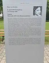 During the National Socialist era, she was banned from performing as a "half-Jew", although she emphasised her own National Socialist sentiments and her husband's party membership, and was only given special permits to work as a music teacher. In Herbert Gerigk's and Theophil Stengel's Lexikon der Juden in der Musik her name already appeared in the first edition (1940).[4]