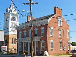 The Englehart Melchinger House in the borough of Dover, York County, Pennsylvania, is the restored home of a prominent 19th Century businessman, Englehart Melchinger. It was built about 1852, and is a rectangular brick building with Greek Revival and Italianate design details. It features an entrance portico with Doric order columns, heavy scroll brackets, and a paneled frieze; and cast iron lintels.[2]