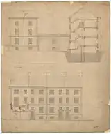The buildings seen from the yard in the 20th century