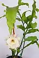 Epiphyllum oxypetalum, the Dutchman's pipe cactus,[3] princess of the night or queen of the night,[4] is a species of cactus with a native range from Mexico to Nicaragua.[5] It blooms nocturnally, and its flowers wilt before dawn. Though it is sometimes referred to as a night-blooming cereus, it is not closely related to any of the species in the tribe Cereeae, such as Selenicereus, that are more commonly known as night-blooming cereus. All Cereus species bloom at night and are terrestrial plants; Epiphyllum species are usually epiphytic.