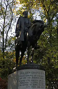 Erastus B. Wolcott is a public art work by American artist Francis Herman Packer, located in Lake Park on the east side of Milwaukee, Wisconsin.[1] The bronze equestrian commemorates military officer and physician Erastus B. Wolcott.[2] It is located in the center of Lake Park, near Eight Stone Lions and the North Point Lighthouse.
