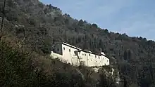 The Monastero or Eremo di Sant'Ambrogio (Monastery or Hermitage of St Ambrose) is a 14th-century Roman Catholic church and monastery located on Via Guido Bonarelli #5 nestled on high slopes of Monte Foce (Monte Calvo), north of Gubbio, region of Umbria, in Italy. It was initially founded as a rustic Franciscan hermitage following Augustinian rules, outside the city walls of Gubbio.