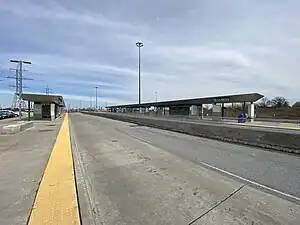 Metrolinx began construction of the Mississauga Transitway West between Winston Churchill Boulevard and Erin Mills Parkway[3] in October 2013 and the entire project was expected to be complete in 2016.[4] The station opened earlier than expected in September 2015 for GO Transit buses but MiWay did not begin serving the station until September 2016.[1]