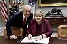 She also negotiated with the Liberals to join the government in 2018.[24] The Liberals officially joined the Solberg Cabinet on 17 January 2018. After the Christian Democrats alliance conflict that lasted from September to November 2018, they eventually negotiated to join the Solberg Cabinet on the grounds of a minor change in the abortion law, something that caused harsh backlash from the public and critics alike. The Christian Democrats officially joined the Cabinet on 22 January 2019.[25]