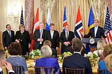 - ↑ Dagenborg, Joachim. "Norway's Liberals to join Conservative-led government". U.S. Archived from the original on 2018-05-27. Retrieved 2018-04-26.