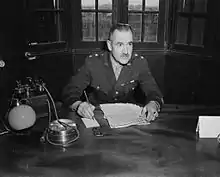 ![]() Major General Ernest J. Dawley at his desk, c. 1943 | |