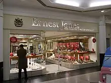Ernest Jones is a British jeweller and watchmaker. Established in 1949 by Ernest and Stella Weinstein, its first store was opened in Oxford Street, London.[1] Ernest Jones specialises in diamonds and watches, stocking brands such as Breitling SA, Omega SA, TAG Heuer, Cartier SA, Gucci, and Emporio Armani. Ernest Jones is part of the Signet Jewelers group and has approximately 180 stores across the United Kingdom.