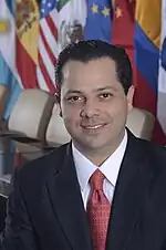 In 2002, he was the personal secretary to the Senator of the Republic and candidate for Governor for the Institutional Revolutionary Party in Sonora, Eduardo Bours Castelo. During Governor Bours's administration (13 September 2003 – 12 September 2009), he was Director General of Government (2003). Subsequently, only 27 years old, he was State Coordinator and later Secretary of Public Safety in the state of Sonora, in 2006 and 2008, respectively.[5] In 2008, when he has 29, he was unanimously elected President of the State Steering Committee of the Institutional Revolutionary Party in Sonora.[6] At the same age, he was elected by the Secretaries of Public Safety of the states of California, Arizona, New Mexico, Texas, Baja California, Chihuahua, Coahuila, Tamaulipas and Nuevo León as Chairman of the US-Mexico Binational Council on Border Security of the Governors' Conference. He would later launch his campaign for the III Federal Electoral District of Sonora, to recover it for the PRI after 18 years of being represented by the National Action Party. On 11 February 2012, he was invited and presented by then presidential candidate for the Institutional Revolutionary Party and the Green Ecologist Party, Enrique Peña Nieto, and his General Campaign Coordinator, Luis Videgaray Caso, to coordinate the permanent nationwide campaign for the 2012 presidential elections in México.[7] Similarly, on 4 September 2012 he was appointed Coordinator for Sports in the Transition process of President Elect of the United Mexican States, Enrique Peña Nieto.[6][8][9] During the campaign for Federal Deputy for the III Federal Electoral District of Sonora, he became the first candidate to have his nickname, "El Pato", appear on electoral ballots during the 2009 Federal Elections in Mexico.[10][11]