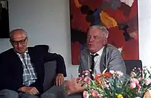 Nay came from a Berlin civil servant's family.[1] He was born the second son of six children. His father Johannes Nay fell in 1914 as a captain in Belgium. Nay completed his humanistic education with the Abitur at the provincial school Pforta in Thuringia in 1921. During this time he made his first painting attempts. He began a bookshop apprenticeship in the Berlin bookstore Gsellius, which he broke off after a year. After that, he supported himself with odd jobs and began to paint self-portraits and landscapes. With three of his autodidactically painted pictures, he presented himself in 1924 to Karl Hofer at the College of Fine Arts in Berlin. Hofer recognized Nay's talent, gave him a scholarship and included him in his painting class. At the college Nay met his future wife Helene (Elly) Kirchner who worked there as a model. He finished his studies in 1928.