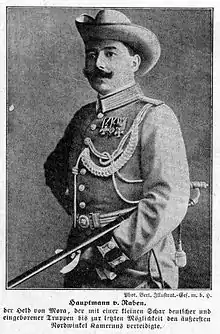 Ernst Klaus Iwan Christian Friedrich Alfred von Raben was a German Major who had served as a commander of the Schutztruppe before surrendering at the Siege of Mora.