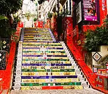Escadaria Selarón, locally known as the 'Lapa Steps' (Escadaria da Lapa) for being situated at the "Lapa" neighborhood, is a set of world-famous steps in Rio de Janeiro, Brazil. They are the work of Chilean-born artist Jorge Selarón who claimed it as "my tribute to the Brazilian people".[1]