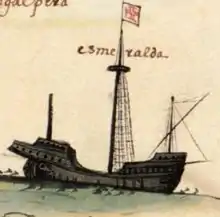 Esmeralda was a Portuguese carrack (Portuguese: nau) that sank in May 1503 off the coast of Oman as part of Vasco da Gama's 1502 Armada to India while commanded by da Gama's maternal uncle Vicente Sodré. First relocated in 1998 and excavated by David Mearns in 201315, is the earliest ship found, as of 2016, from Europe’s Age of Discovery.[2][1][3]