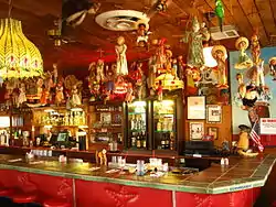 ... one expects the food at Esparza's to be something special; You might think that the line trickling out the door on a Thursday night is an indication of exceptional Tex-Mex, worth a considerable sum. Well, certainly, Esparza's dècor, an amalgam of Western nostalgia, Texan brawn, and Tijuana cheese is executed with flair. Unfortunately though, no thematic coup can compensate for the fact that Esparza's food rarely exceeds mediocre, and never lives up to its price... The bulk of the clientele resides in a comfortable economic bracket and come down to the gritty Eastside to quaff top shelf margaritas and feast on manic kitsch. The hot corn chips and fresh salsa, which come fast and free, are the height of the meal. Smoked salmon enchiladas are just wrong; No quantity of barbecue sauce (in this case, cloying and acrid) is going to improve a tough, dry brisket. The pork tacos are equally dry, but the ground buffalo enchiladas are very macho and spicy (though they will linger painfully)... The beans and rice that accompany most entrees are utterly flavorless, a gratuitous use of space on the plate. Some people like beans and rice; Esparza's doesn't seem to care. It's a troublesome adage, 'you get what you pay for,' when you've gorged on flash and formula—and yet, you're starved for a good meal.[19]