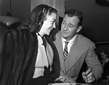 Their marriage was rocky and volatile from the start because she was reportedly jealous of his devotion to his work and to his four children; they had no children of their own. "Our marriage was like shaking two volatile chemicals in a jar", Wayne said. Esperanza accused Wayne of having an affair with Gail Russell, his leading lady in Angel and the Badman, which he denied. There were charges and counter-charges of unfaithfulness, drunken violence, emotional cruelty, and "clobbering". Wayne described his wife as a "drunken partygoer who would fall down and then accuse him of pushing her."[1] Esperanza was accused of having an affair with hotel heir Nicky Hilton during divorce proceedings.[3] They separated in May 1952;[4] in the end the marriage lasted eight years, coming to an end on November 1, 1954.[5]