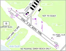 The 48 acre airport is surrounded by 588 acres of undisturbed and pristine wetlands and heavy forest. As the last light general aviation airport in Baltimore County, the airpark offers a 2,084 by 28 foot asphalt runway and a 3,000 by 300 foot water runway. Local aviation enthusiasts use it to fly single engine airplanes, ultralights, seaplanes, banner towing, and radio controlled aircraft.[3]