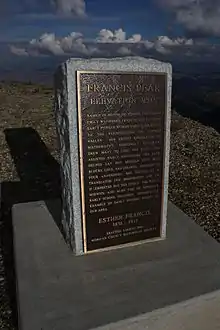 "History and local tradition during the past century verifies that Francis Peak was named in honor of Esther Charlotte Emily Weisbrodt Francis, an early pioneer woman of Morgan, Utah".
