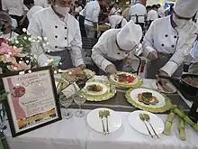 Estofado, Estufado or Estofadong Baboy (from Spanish estofar: "stew,") is a Filipino dish in Philippine cuisine similar to Philippine adobo that involves stewed pork cooked in vinegar and soy sauce with fried plantains, carrots and sausages.[2][3]
