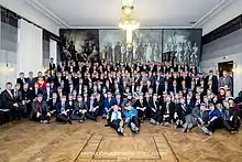The Estonian Students' Society (Estonian: Eesti Üliõpilaste Selts;[1] commonly used acronym: EÜS) is the largest and oldest all-male academical student society in Estonia, and is similar to the Baltic German student organizations known as corporations (Corps) (not to be confused with US college fraternities). It was founded in 1870 at Tartu. It has over 900 members in Estonia and abroad.