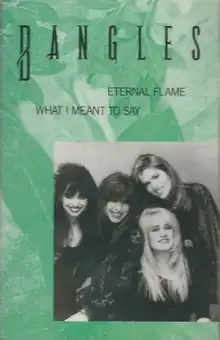 Given that the Bangles' "Walk Like an Egyptian" had been ranked by Billboard as the number one single of 1987 and that the group had reached number two on the Billboard Hot 100 in 1986 with "Manic Monday" and in 1987 with "Hazy Shade of Winter", the number-five Hot 100 peak of the lead single from their album Everything, "In Your Room", was a comparative disappointment with its parent album Everything—whose original Billboard 200 peak was number 33—being considered a flop.[19] The January 1989 release of "Eternal Flame" as the new Bangles' single was heralded in the Chicago Tribune with the song described as an "old-fashioned killer ballad that is just about as far as one could get from the psychedelic sound of the group's recent Top 5 hit 'In Your Room'."[20] "Eternal Flame" debuted at number 56 on the Hot 100 issue dated February 4, 1989, when "In Your Room" was ranked at number 45,[21] and rose to number one after ten weeks,[22] making the Bangles the third all-female group to top the Hot 100 multiple times, after the Shirelles and the Supremes.[23] In addition "Eternal Flame" set a record for the song's co-writers: Billy Steinberg and Tom Kelly, as the first songwriting team to score a number-one Hot 100 hit five years in a row.[24] "Eternal Flame" also afforded the Bangles a two-week tenure at number one on the Adult Contemporary chart.[25]