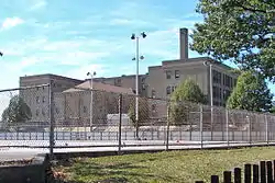 This historic school building was designed by Irwin T. Catharine and was built between 1929 and 1930. A three-story, eight-bay, yellow brick building in the Art Deco style, it features an arched entryway with terra cotta trim, terra cotta cornice, and brick parapet.[2] It was named for patriot Ethan Allen.