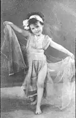Around 1909, when she was three years old, Ethel's daughter Virginia revealed herself to be possessed of strong artistic talent as well. One day, as Ethel was playing the piano, she looked up to see Virginia naturally dancing to the rhythm and the emotional feeling of the music. This was a time when the impact of Isadora Duncan's dancing had totally captured the imagination of the artistic community of New York, as well as much of the rest of the world, and Ethel took note of Virginia's gift for spontaneous and instinctive movements. She encouraged her daughter to perform, both privately and publicly. Virginia starred in an Edison-produced film, Dream Dances of Virginia Myers, when she was five years old, doing 20 minutes of her own improvised solo dances as the first half of a "split-reeler." The film was to spread her fame to all of America, far beyond the limits of just her acclaim in New York City. In 1913, her talent was celebrated in an article in Vogue Magazine titled "When Virginia Dances," in which she was called "a child of the century."[18]