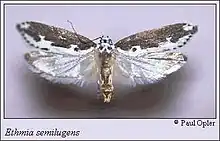 2. Powell, Jerry (1973). "A Systematic Monograph of New World Ethmiid Moths (Lepidoptera: Gelechioidea)". Smithsonian Contributions to Zoology. Retrieved 12 June 2020.
