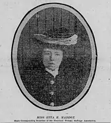 Henrietta Haynie Maddox (January 6, 1860 – February 19, 1933) was a vocalist, lawyer and suffragist. Maddox became the first woman in Maryland licensed to practice law in 1902. She fought for the rights of women to take the bar exam and practice law in the state of Maryland. She was a successful vocalist who studied at the Peabody Conservatory of Music before starting a second career as an attorney. She was the co-founder of the Maryland Woman Suffrage Association in 1894 and campaigned for equal pay for equal work. Maddox wrote the first Maryland suffrage bill introduced to the General Assembly on February 23, 1910.[1]
