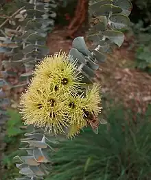 | Eucalyptus krueseana leaves and flowers. | |