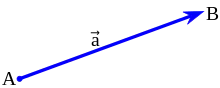 In mathematics, physics, and engineering, a Euclidean vector or simply a vector (sometimes called a geometric vector[1] or spatial vector[2]) is a geometric object that has magnitude (or length) and direction. Vectors can be added to other vectors according to vector algebra. A Euclidean vector is frequently represented by a directed line segment, or graphically as an arrow connecting an initial point A with a terminal point B,[3] and denoted by