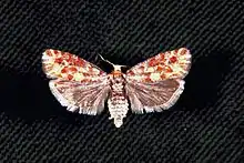 The wingspan is 18–22 mm. Adults are tan to reddish brown with grey shading.