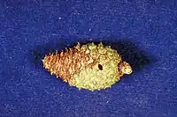 The larvae feed on Pinus species, including Pinus echinata, Pinus virginiana and Pinus rigida. Young larvae bore into the cones of their host plant. They move to another cone when it is eaten out. Full-grown larvae drop to the ground to pupate in the soil, where they overwinter.[3]
