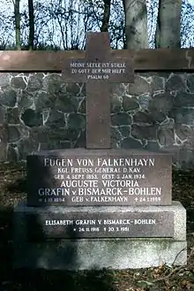 Eugen von Falkenhayn (4 September 1853 – 3 January 1934) was a German General of the Cavalry, commanding officer of the XXII Reserve Corps in World War I and Lord Chamberlain of Empress Auguste Viktoria.