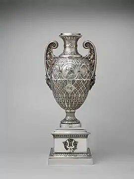 The Bryant Vase, by Eugene J. Soligny with medallions designed by Augustus Saint-Gaudens, 1875–76, made to honor William Cullen Bryant