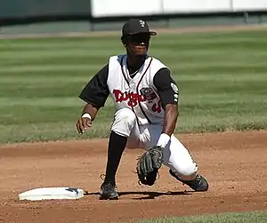 ![]() Vélez playing for the Lansing Lugnuts in 2005 | |