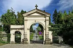 The new Lutheran cemetery on Bielska Street, east of the old town was established in 1887 on the city limits of Bobrek when the Old Evangelical Cemetery at the Jesus Church became inadequate to cope with mortality rates. The cemetery is divided into 6 quarters which was divided into individual sections and plots which can be seen on an electronic map.[1] The cemetery was declared a protected object of cultural heritage on July 11, 1986.[2]