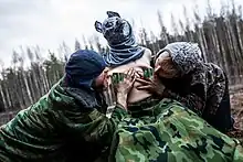 Eve's Ribs (Russian: «Рёбра Евы») is a feminist multifaceted social and artistic project dedicated to fighting gender discrimination and violence against women.[1] Itcovers several areas of socially-oriented work, including anti-war actionism. The project was founded in 2015 by Saint Petersburg-born director and actionist Leda Garina and actress and theatre producer Anastasia Trizna, who permanently resides in Helsinki.[2]