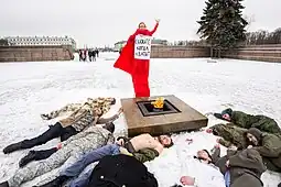 13. "«Скоростной прыжок из п***ы в могилу»: в Петербурге антивоенные активисты отметили 23 февраля" [“A high-speed jump from p***y to the grave”: anti-war activists celebrated February 23 in St Petersburg] (in Russian). Activatica. February 24, 2020. Archived from the original on July 7, 2023. Retrieved July 6, 2023.