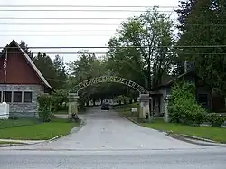 Main gate of Evergreen Cemetery in Rutland, Vermont