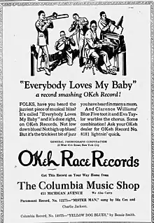 1925 Okeh Records ad for recording by Clarence Williams Blue Five
