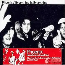 "Everything Is Everything" is a song by French rock band Phoenix and is featured on their second studio album, Alphabetical. It was released 22 March 2004 in the European Union and Japan as the lead single from that album. It was also released 12 July 2004 as a single from the album in the United Kingdom. It is featured in the music video game Guitar Hero On Tour: Decades, as downloadable content for Guitar Hero 5, and on Six Feet Under, Vol. 2: Everything Ends.
