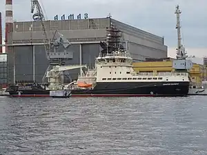 In the mid-2010s, the Ministry of Defence of the Russian Federation announced that a fleet of new auxiliary icebreakers would be built for the Russian Navy as part of the ongoing fleet renewal program to replace Soviet-era vessels.[11] However, the initial plans for the construction of four 6,000-tonne (5,900-long-ton) Project 21180 icebreakers was revised after the lead ship, Ilya Muromets, turned out to be too expensive. As a response to this, Vympel Design Bureau developed a revised design, 21180M, with about two thirds of the displacement and more limited functionality compared to the bigger vessel.[1][12]